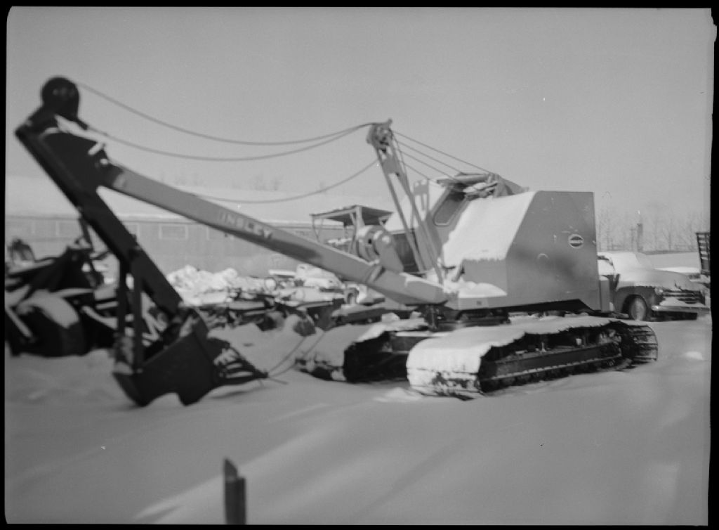 Pelle mécanique Insley en vue des travaux de drainage à Amos, 1955, Archives nationales à Québec, Fonds Ministère de la Culture et des Communications, (03Q,E6,S7,SS1,D2468,P74-55H), Benoit Dumont.