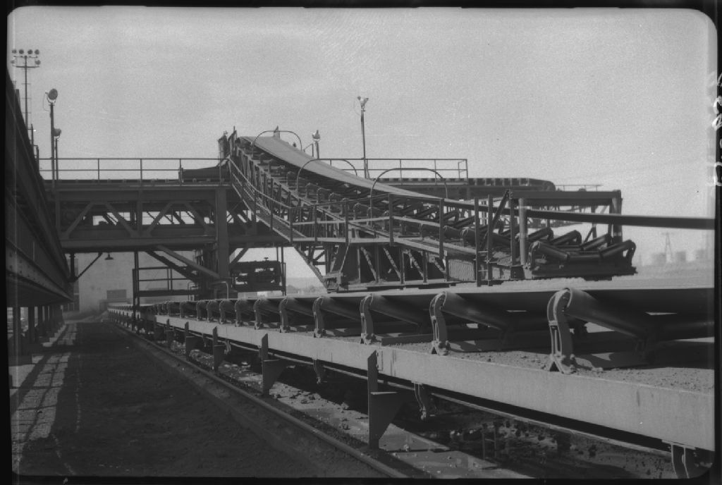 Convoyeur pour chargement mécanique du minerai de fer. Iron Ore Co. of Canada, Sept-Îles, comté de Saguenay