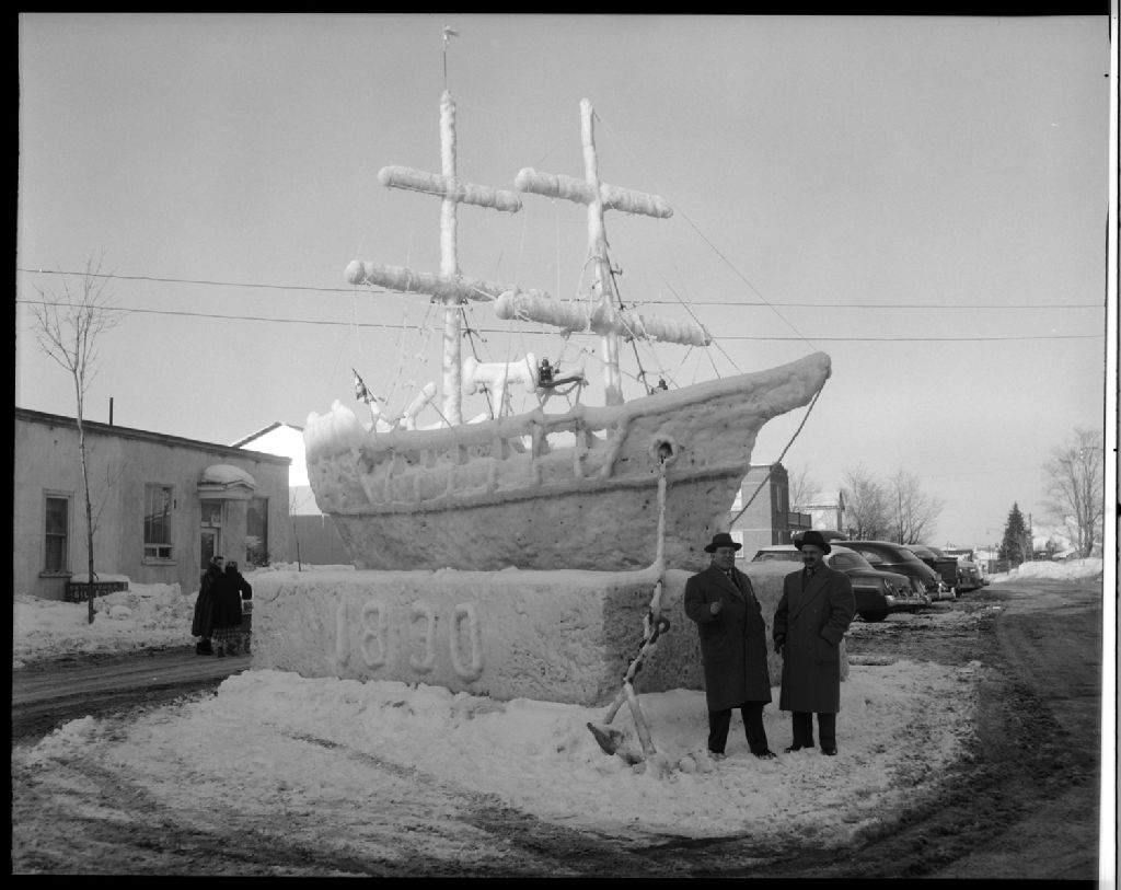 René Morand, expert en gastronomie en visite au bureau des Hôteleries à Québec, 1955, Archives nationales à Québec, Fonds Ministère de la Culture et des Communications, (03Q,E6,S7,SS1,D2475,P168-55H), Neuville Bazin.