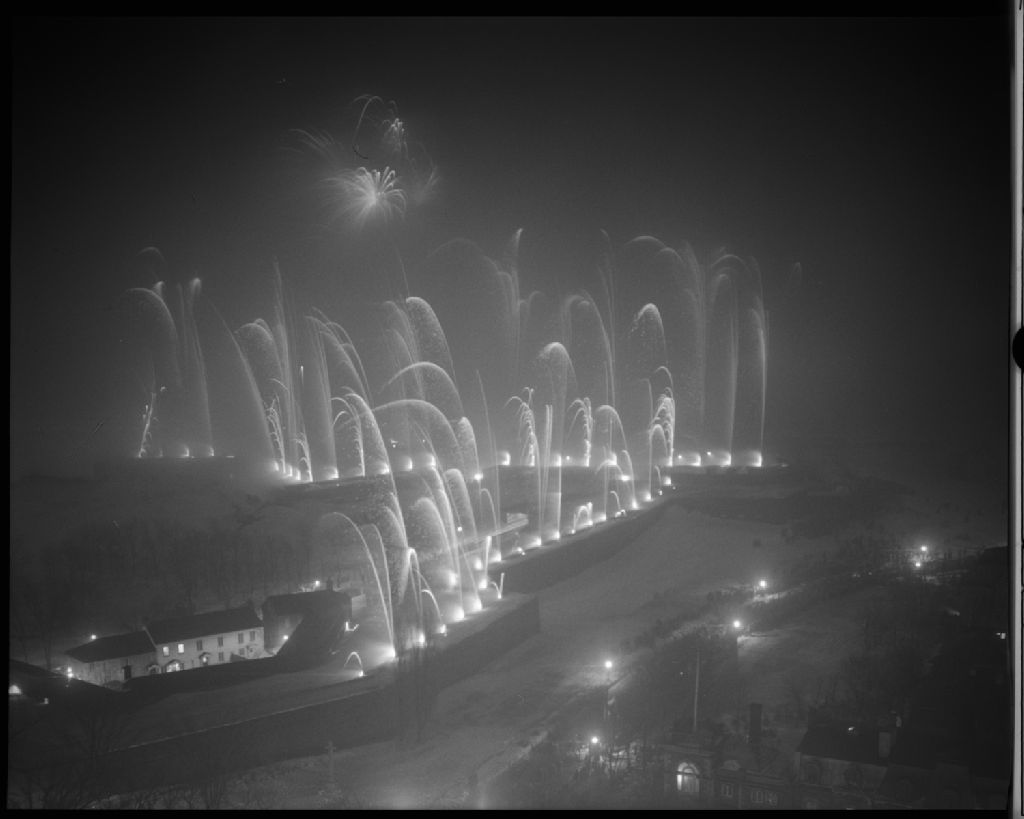 Les murs de la Citadelle sont illuminés par des fusées multicolores pour la "Prise de la ville" lors du carnaval d'hiver de Québec