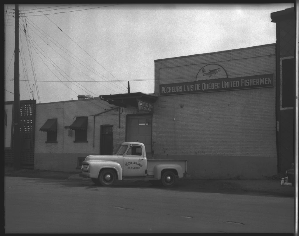 Entrepôt des Pêcheurs Unis du Québec, 1955, Archives nationales à Québec, Fonds Ministère de la Culture et des Communications, (03Q,E6,S7,SS1,D7,P456-55H), Neuville Bazin.