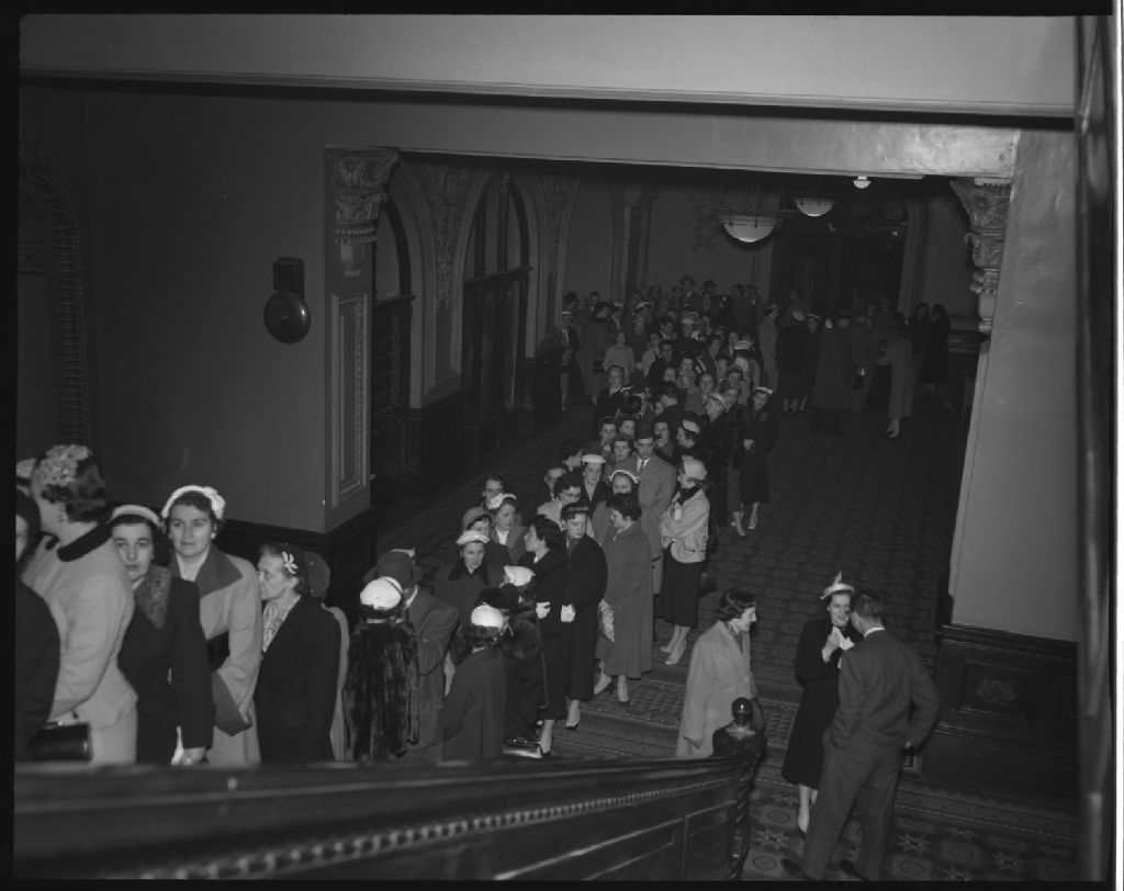 Salon culinaire tenu au Café du Parlement, Québec, 1955, Archives nationales à Québec, Fonds Ministère de la Culture et des Communications, (03Q,E6,S7,SS1,D2496,P577-55H), Neuville Bazin.