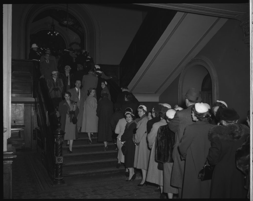 Salon culinaire tenu au Café du Parlement, Québec, 1955, Archives nationales à Québec, Fonds Ministère de la Culture et des Communications, (03Q,E6,S7,SS1,D2496,P578-55H), Neuville Bazin.
