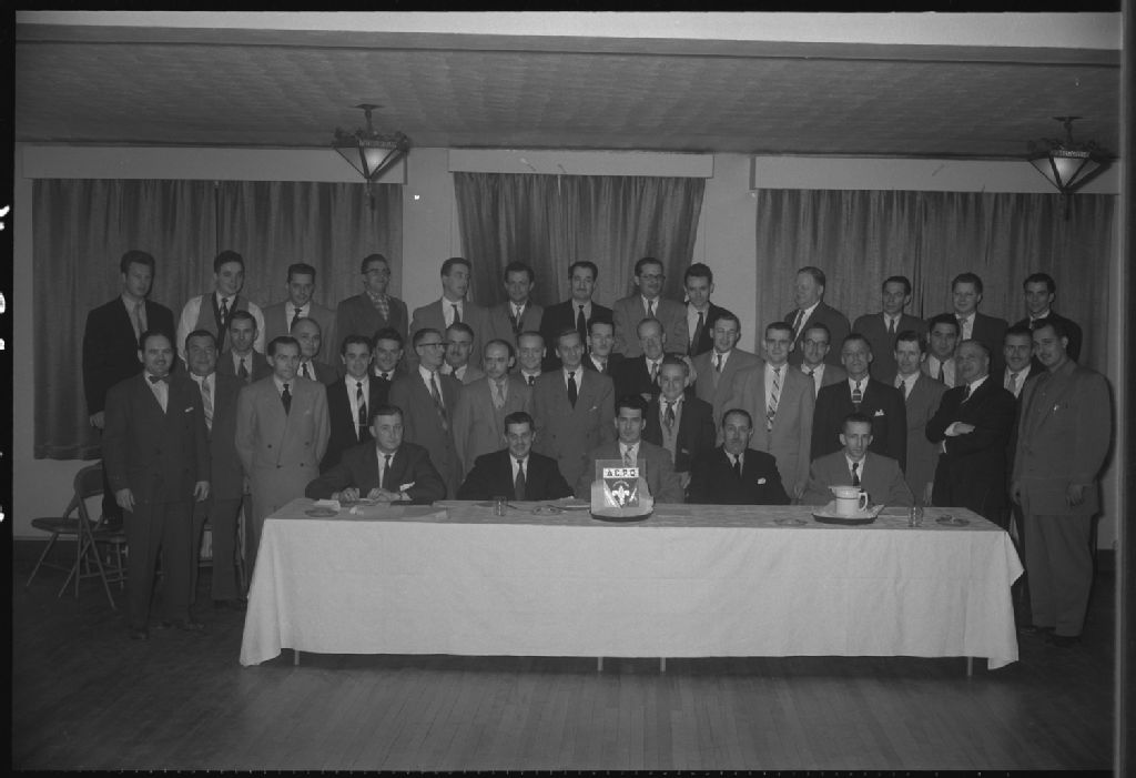 Salon culinaire tenu au Café du Parlement, Québec, 1955, Archives nationales à Québec, Fonds Ministère de la Culture et des Communications, (03Q,E6,S7,SS1,D2496,P580-55H), Neuville Bazin.