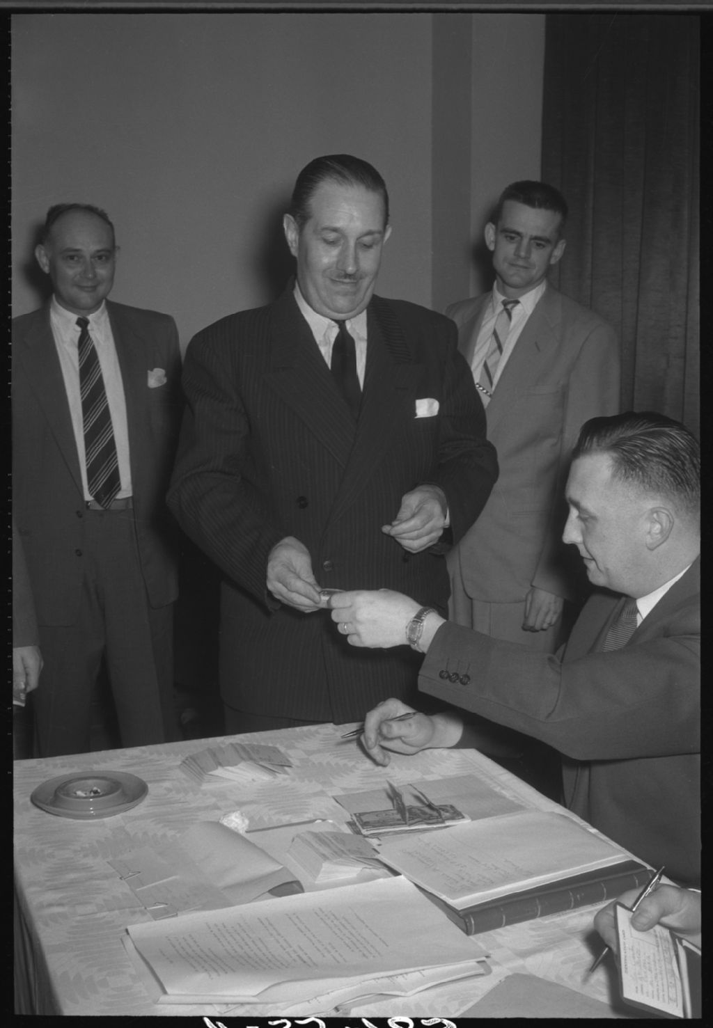 Salon culinaire tenu au Café du Parlement, Québec, 1955, Archives nationales à Québec, Fonds Ministère de la Culture et des Communications, (03Q,E6,S7,SS1,D2496,P581-55H), Neuville Bazin.