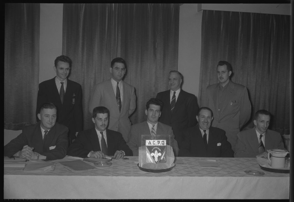 Salon culinaire tenu au Café du Parlement, Québec, 1955, Archives nationales à Québec, Fonds Ministère de la Culture et des Communications, (03Q,E6,S7,SS1,D2496,P584-55H), Neuville Bazin.