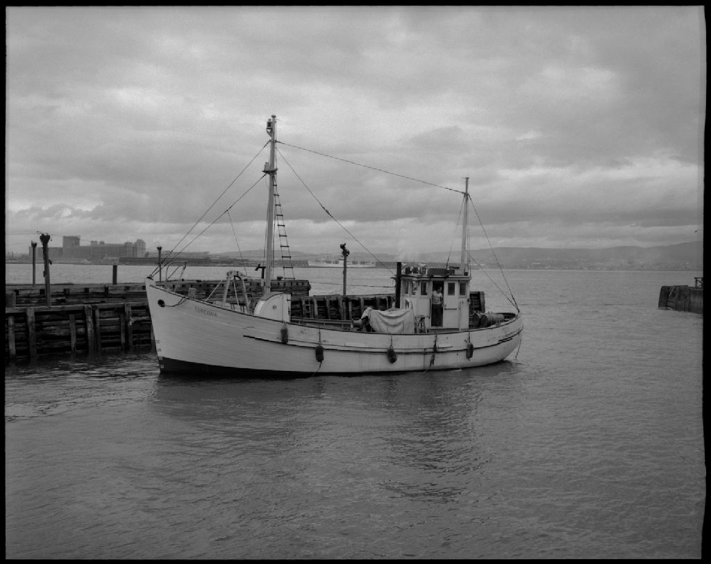 Chalutier de type scandinave, Lévis, 1955, Archives nationales à Québec, Fonds Ministère de la Culture et des Communications, (03Q,E6,S7,SS1,D2525,P812-55H), Gustave Bédard.