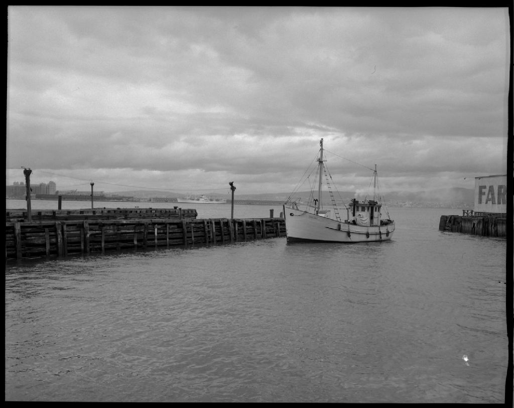Chalutier de type scandinave, Lévis, 1955, Archives nationales à Québec, Fonds Ministère de la Culture et des Communications, (03Q,E6,S7,SS1,D2525,P815-55H), Gustave Bédard.