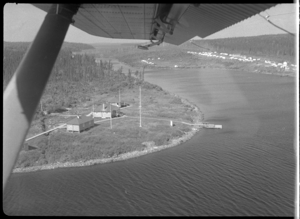 Bâtisses du ministère de la Chasse et de la pêche à vol d'oiseau au Grand Lac Mistassini