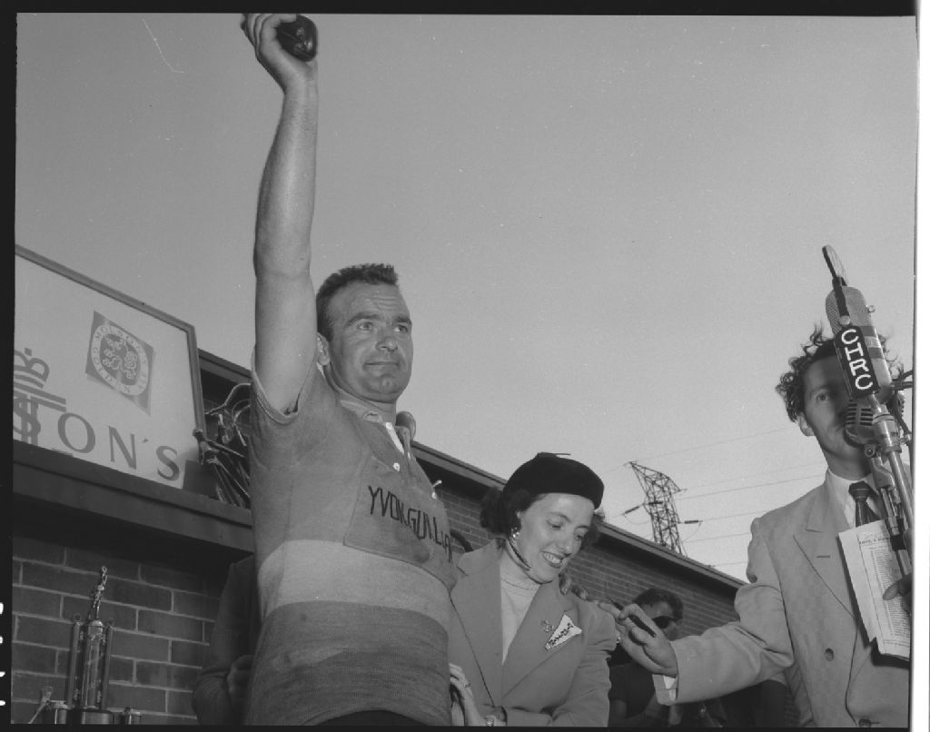 L'organisateur du Tour du Saint-Laurent cycliste, Yvon Guillou et madame Guillou chez Dumais Ltée, Québec
