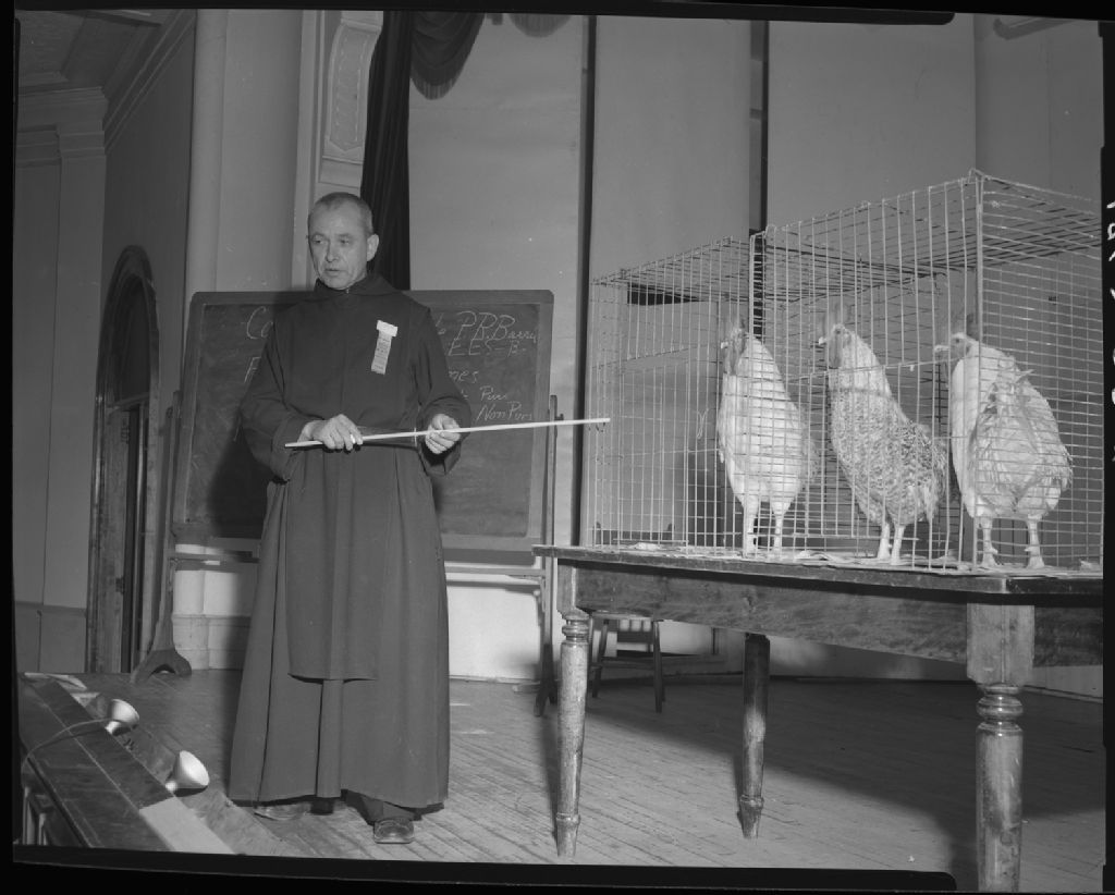 Cours de génétique avicole, 1955, Archives nationales à Québec, Fonds Ministère de la Culture et des Communications, (03Q,E6,S7,SS1,D2654,P1863-55H), Omer Beaudoin.