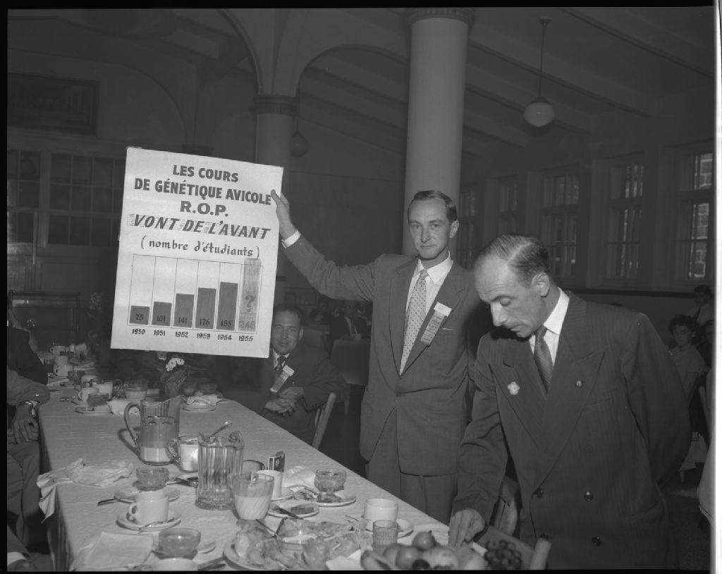 Cours de génétique avicole, 1955, Archives nationales à Québec, Fonds Ministère de la Culture et des Communications, (03Q,E6,S7,SS1,D2654,P1871-55H), Omer Beaudoin.