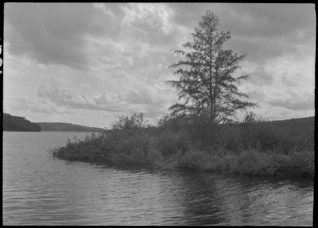 Contre-jour au Lac Sergent, comté de Portneuf, 1955, Archives nationales à Québec, Fonds Ministère de la Culture et des Communications, (03Q,E6,S7,SS1,D7,P1883-55H), A. Proulx.