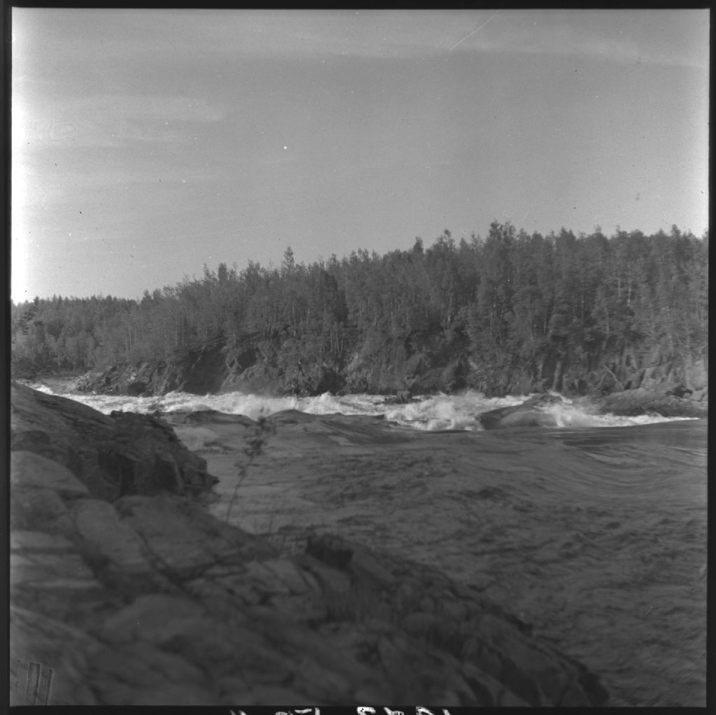 Le rapide de la Chute-Rouge sur la rivière Waswanipi entre les lacs Olga et Matagami. Chute-Rouge, comté Abitibi-Est, 1955, Archives nationales à Québec, Fonds Ministère de la Culture et des Communications, (03Q,E6,S7,SS1,D2659,P1987-55H), P. Chouinard.