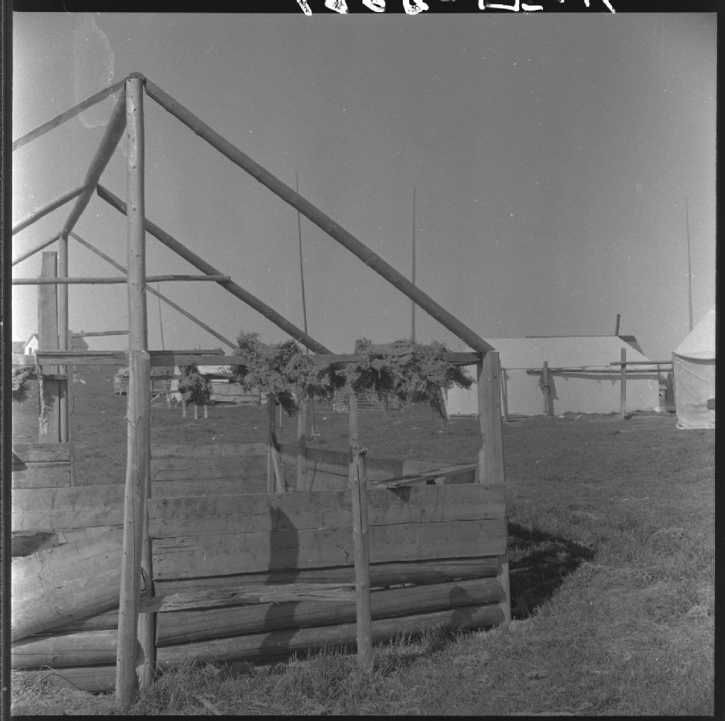Spaignes séchant sur la charpente d'une tente de la réserve de Waswanipi, comté Abitibi-Est