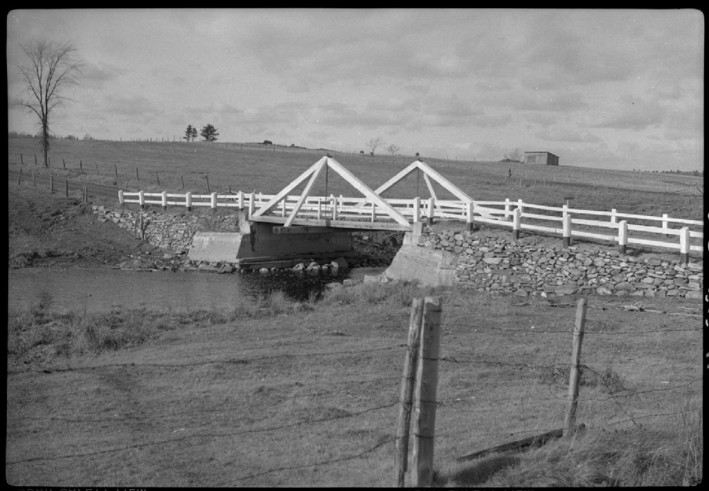 Vue du pont sur le rang VI, lots 261, 262 et 263 à Saint-Élie d'Orford, comté de Sherbrooke, 1955, Archives nationales à Québec, Fonds Ministère de la Culture et des Communications, (03Q,E6,S7,SS1,D7,P2672-55H), Jacques Vaillancourt.