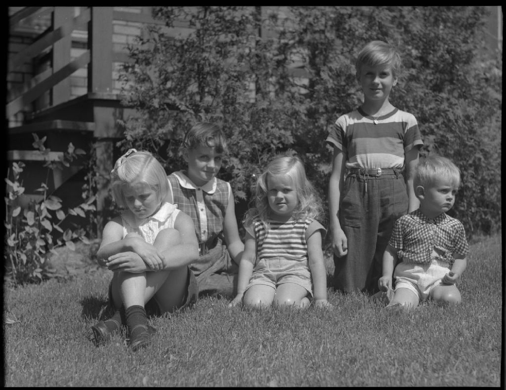 Enfants assis dans l'herbe à Saint-Laurent-du-Fleuve