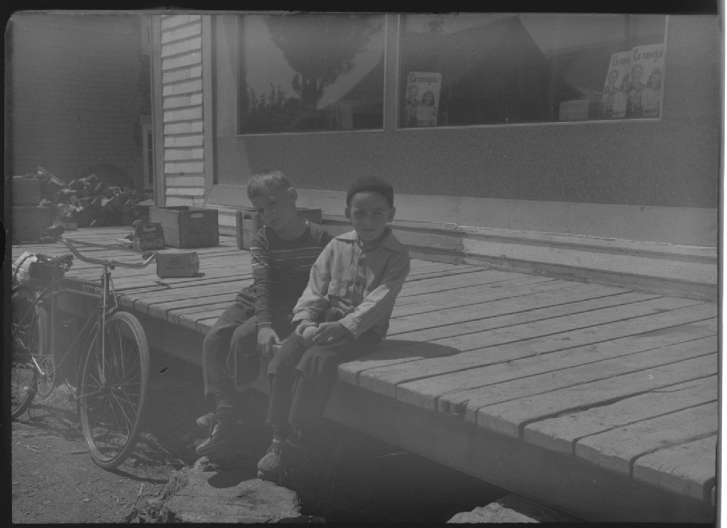 Enfants devant le magasin général à l'Île-aux-Grues