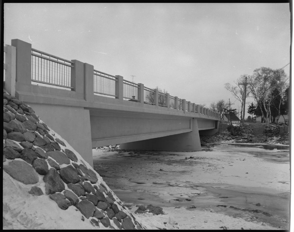 Pont à Saint-Pacôme, 1955, Archives nationales à Québec, Fonds Ministère de la Culture et des Communications, (03Q,E6,S7,SS1,D7,P3155-55H), Paul Carpentier.