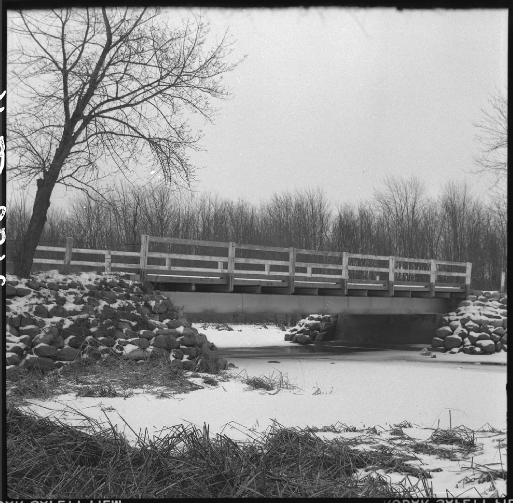 Pont Adam sur la Rivière-du-Sud à Saint-Georges-d'Henryville, comté d'Iberville, 1955, Archives nationales à Québec, Fonds Ministère de la Culture et des Communications, (03Q,E6,S7,SS1,D7,P3189-55H), René Robitaille.