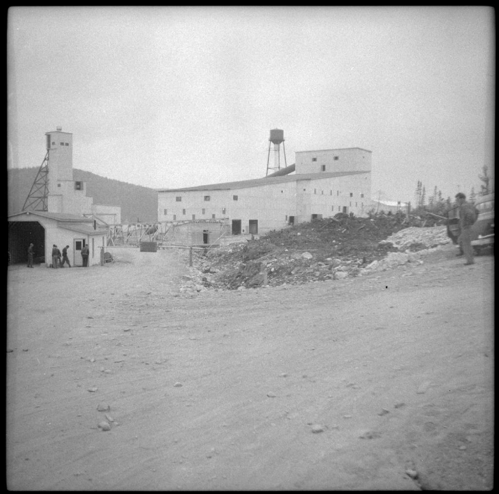 Quelques bâtiments de la mine Campbell. Cette mine se trouve dans l'Île Merrill sur le lac-aux-Dorés à quelques milles de Chibougamau