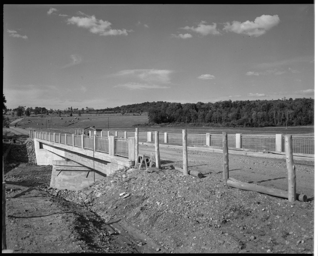Pont Bélisle sur la rivière-aux-Saumons à Sainte-Edwidge, comté de Compton, 1955, Archives nationales à Québec, Fonds Ministère de la Culture et des Communications, (03Q,E6,S7,SS1,D7,P3380-55H), Paul Carpentier.