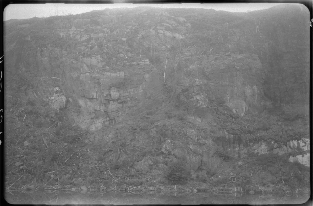 Vue vers l'ouest de la falaise du gisement du lac Tio, Mine Tio, Quebec Iron & Titanium Co.