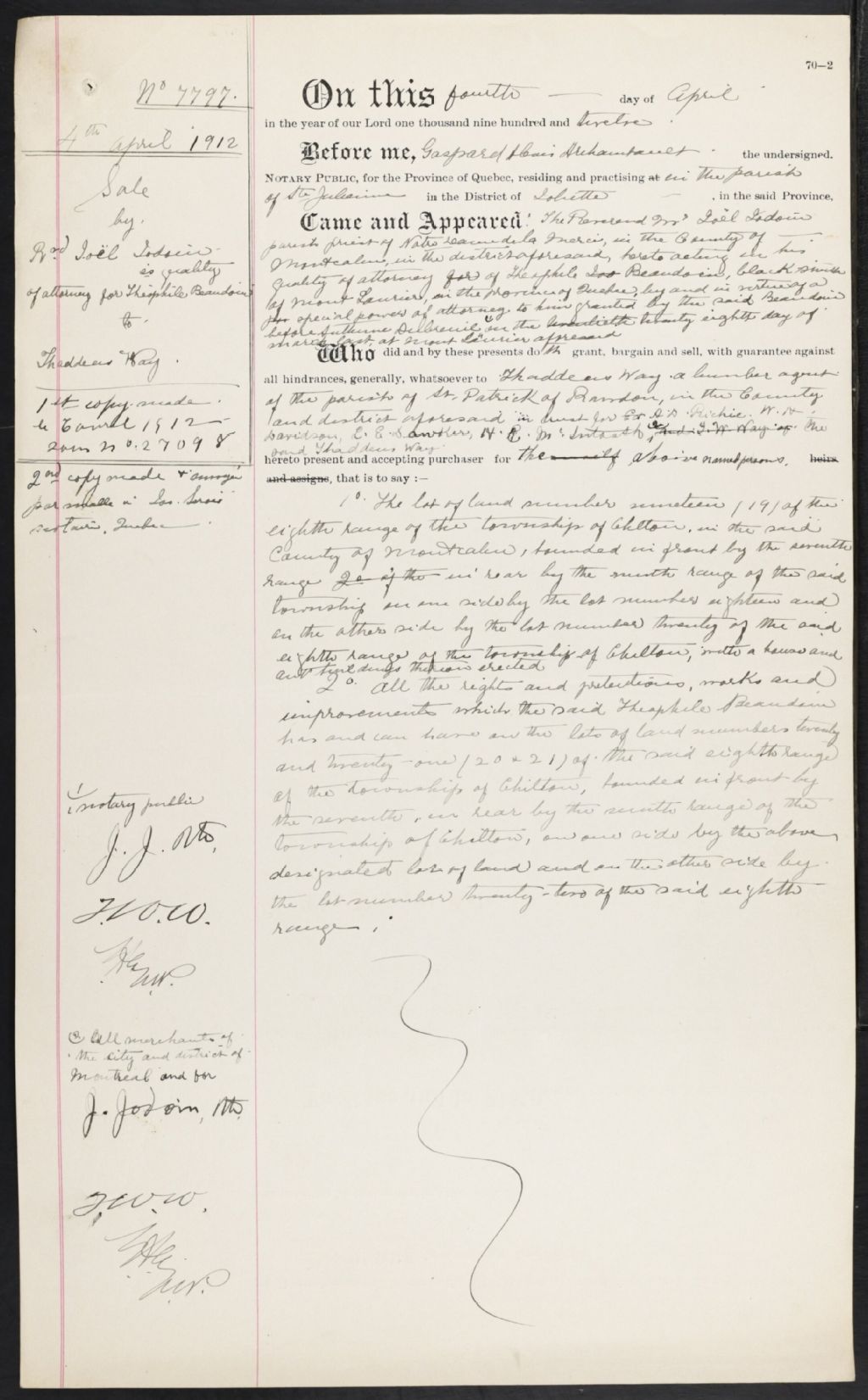 - Les minutes du notaire Gaspard Alexis Archambault reflètent les activités de la population de Saint-Alphonse-de-Rodriguez où il a pratiqué de 1884 à 1888, et de Sainte-Julienne de 1888 à 1924, où il a terminé sa carrière. À noter qu'il a signé son premier acte (testament d'une résidante de Saint-Alexis, comté de Montcalm) alors qu'il résidait à Montréal.