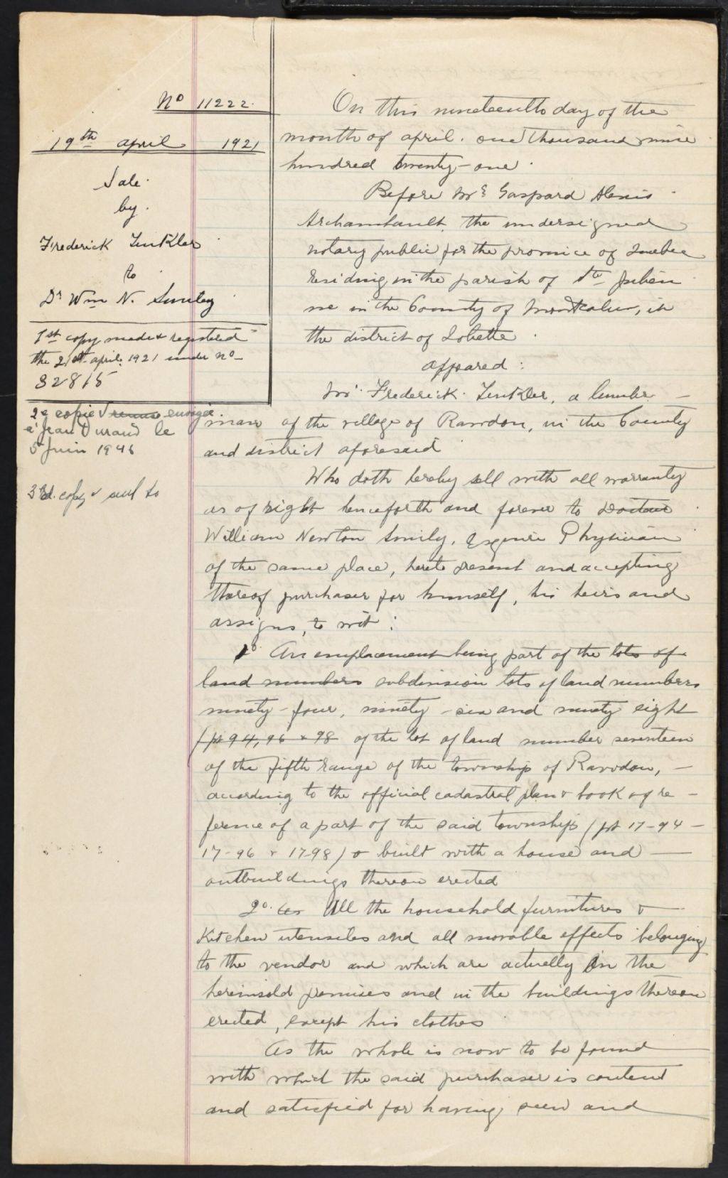 - Les minutes du notaire Gaspard Alexis Archambault reflètent les activités de la population de Saint-Alphonse-de-Rodriguez où il a pratiqué de 1884 à 1888, et de Sainte-Julienne de 1888 à 1924, où il a terminé sa carrière. À noter qu'il a signé son premier acte (testament d'une résidante de Saint-Alexis, comté de Montcalm) alors qu'il résidait à Montréal.