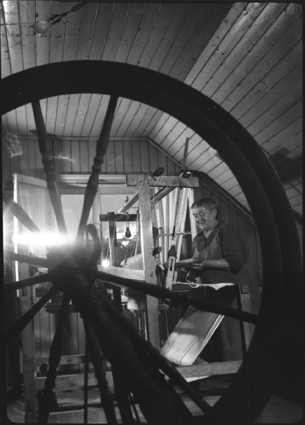 Femme au métier à tisser, Vers 1950, Archives nationales à Québec, Fonds George A. Driscoll, (03Q,P630,S2,D13551), Photographe non identifié.