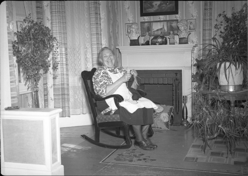 Mme Clouet tricote au salon