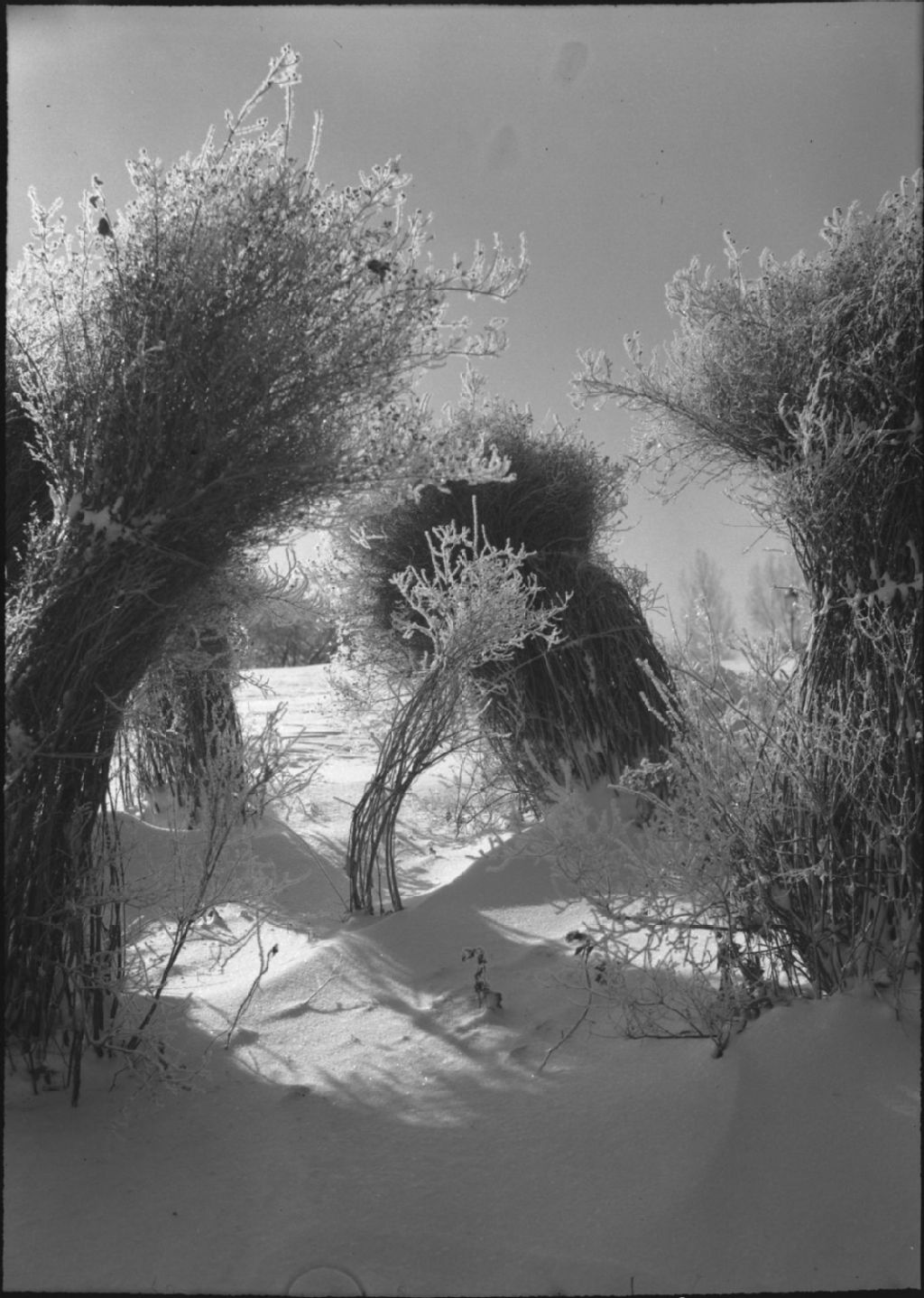 Arbustes givrés dans une plaine enneigée