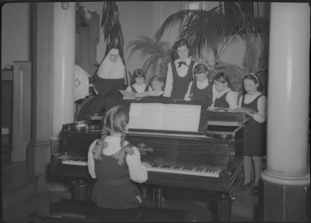 Leçon de chant. Fillette au piano. Couvent des Ursulines