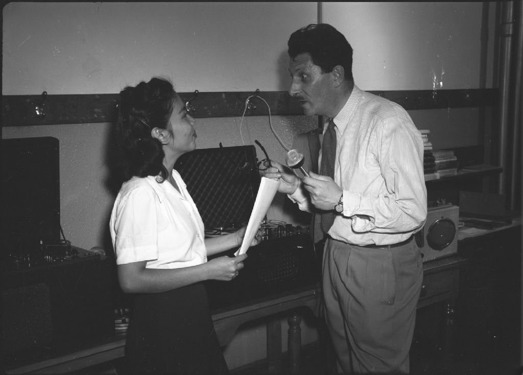 Cours de diction du professeur Jacques Mordret. Université Laval, Vers 1950, Archives nationales à Québec, Fonds George A. Driscoll, (03Q,P630,S4,D67849), George A. Driscoll.