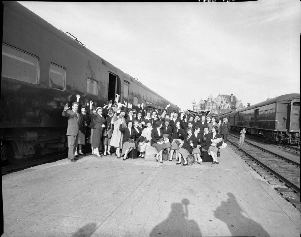 Portrait de groupe d'étudiants de l'institut Driscoll à la gare du Palais de Québec