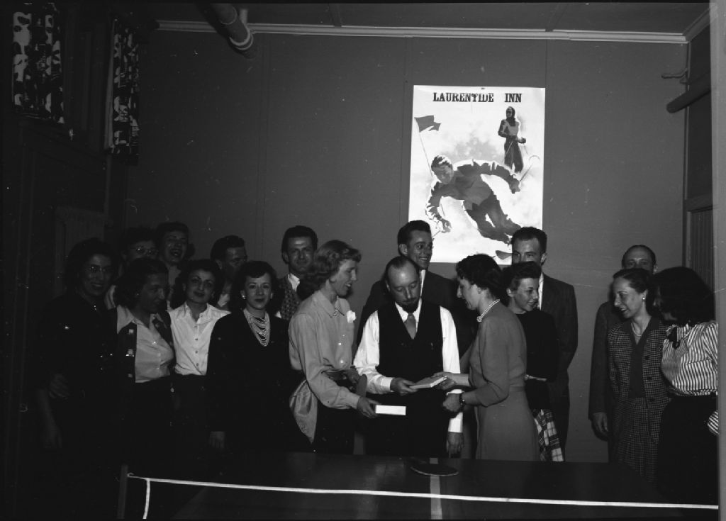 Groupe autour d'une table de ping-pong. Sainte-Agathe, Vers 1950, Archives nationales à Québec, Fonds George A. Driscoll, (03Q,P630,S6,D79151), George A. Driscoll.
