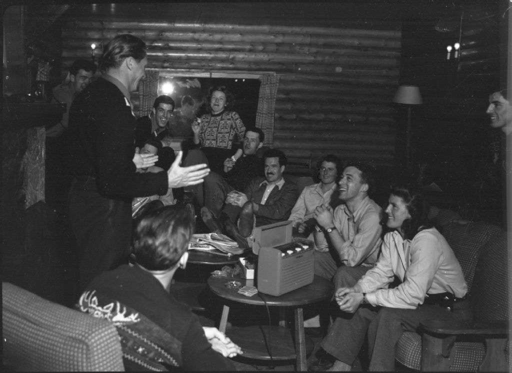 Émile Allais explique la théorie du ski à ses élèves. Valcartier Ski Lodge