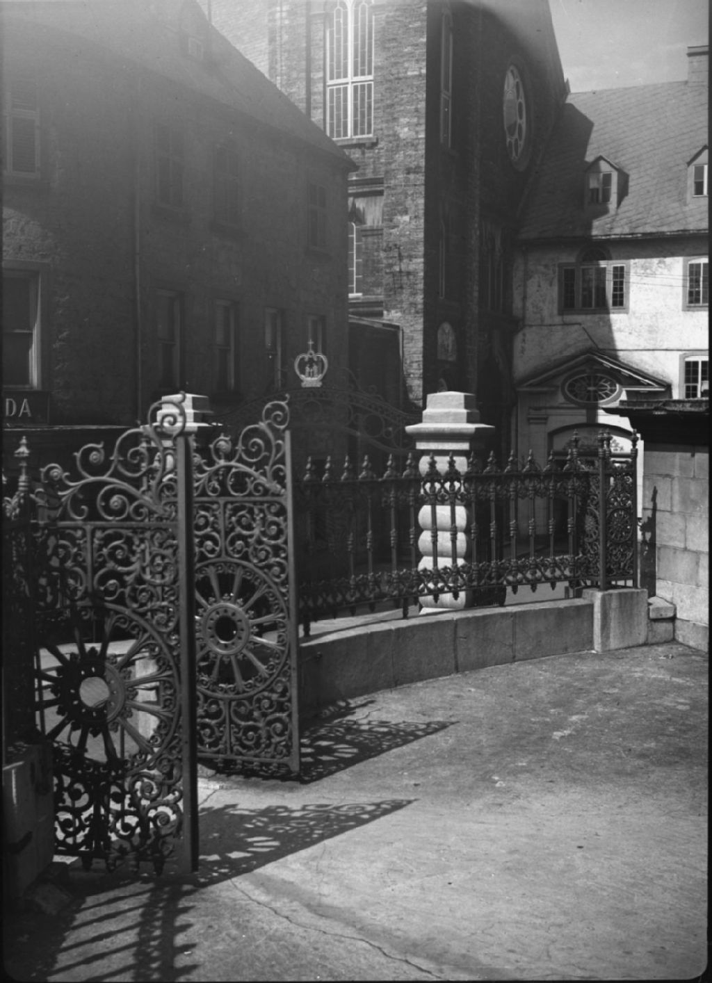 Clôture en fer forgé devant la basilique Notre-Dame de Québec. Québec