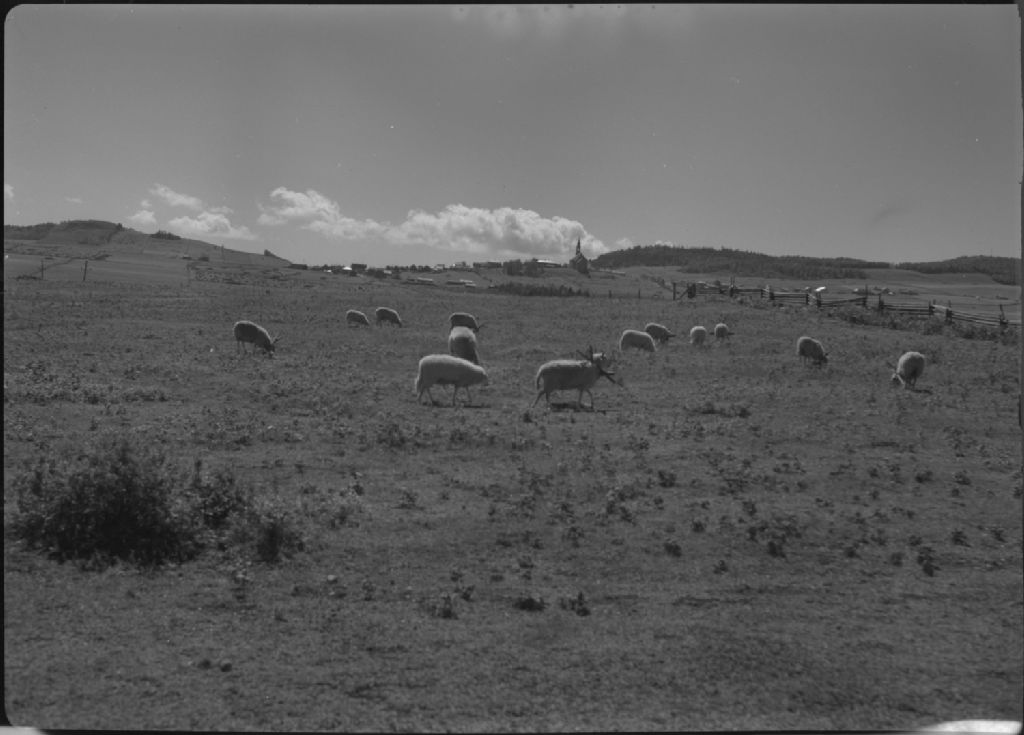 Moutons dans un champ. Saint-Urbain. Charlevoix, Vers 1950, Archives nationales à Québec, Fonds George A. Driscoll, (03Q,P630,S8,D15850), George A. Driscoll.