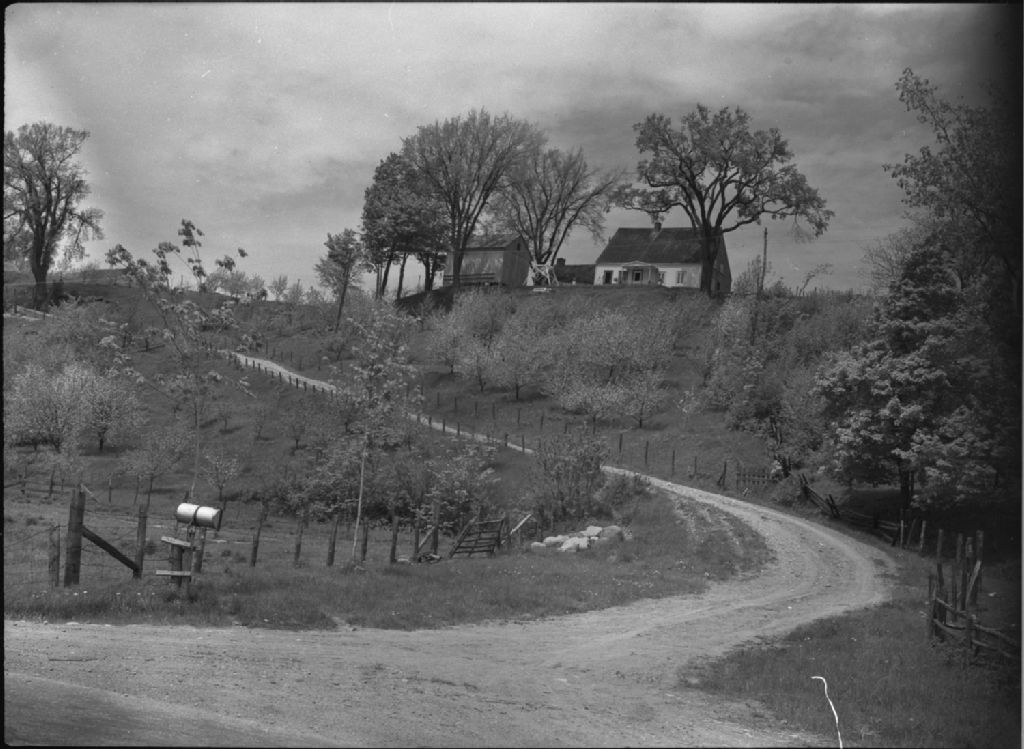 Ferme sur les hauteurs à Valcartier. Chemin tortueux qui monte à la maison. Automne.Québec