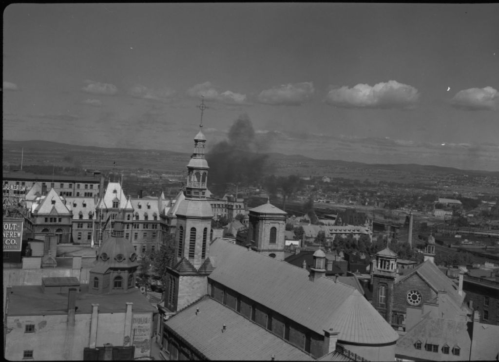 Basilique Notre-Dame de Québec vue des toits voisins. Québec