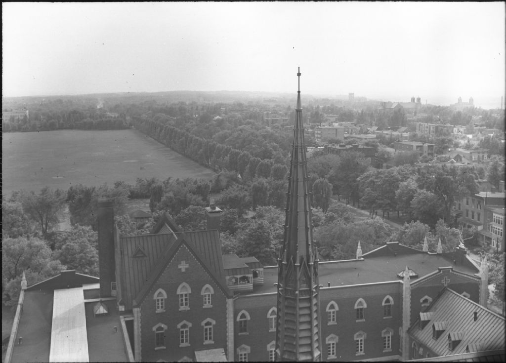 Les Plaines d'Abraham, clocher de l'église St-Dominique, vus du toît du Château St-Louis