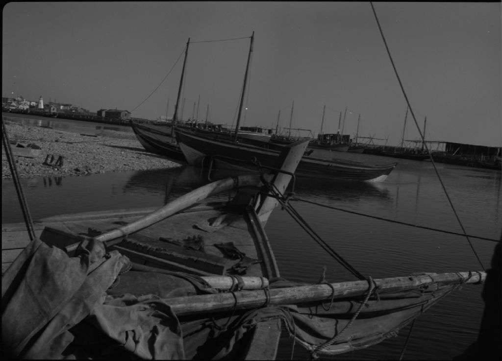 Barques de pêcheurs sur la grève. Cap-des-Rosiers