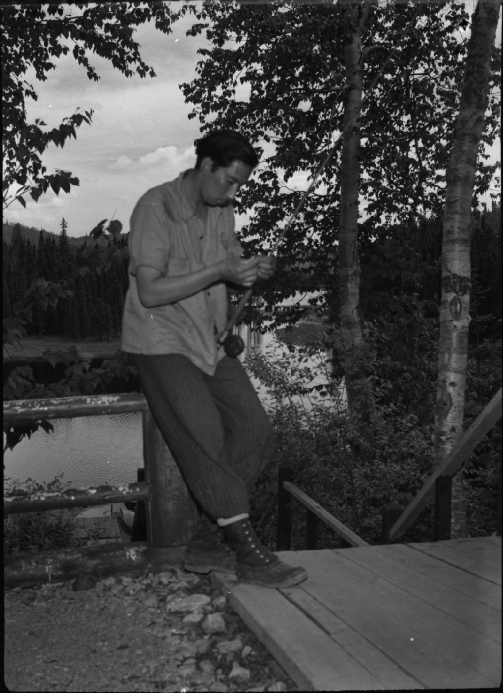Paul et guide indien à la pêche, parc des Laurentides, vers 1950, Archives nationales à Québec, Fonds George A. Driscoll, (03Q,P630,S10,D3549), George A. Driscoll.