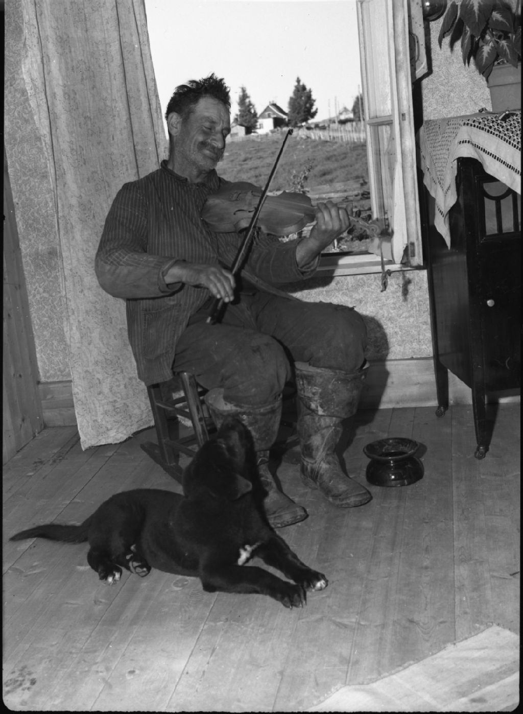 Violoneux à l'Île-aux-Grues, Vers 1950, Archives nationales à Québec, Fonds George A. Driscoll, (03Q,P630,S11,D8449), George A. Driscoll.