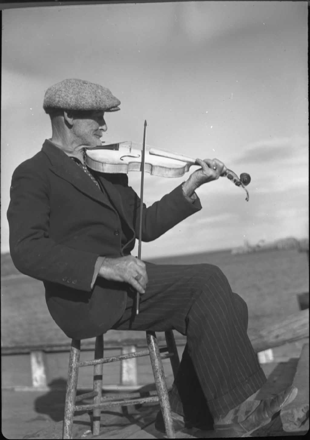 - 41451-3 Violoneux sur le quai de Tadoussac.41451-4 Violoneux sur le quai de Tadoussac. Bateau de la Canadian Steamship à l'horizon.