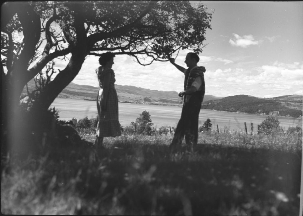 Charlevoix : couple sous un arbre. Les Éboulements en arrière-plan