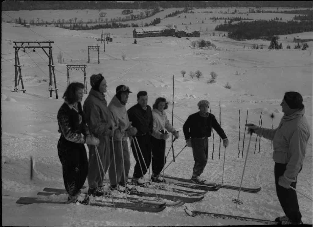 Émile Allais et ses élèves à Valcartier, vers 1950, Archives nationales à Québec, Fonds George A. Driscoll, (03Q,P630,S14,D76451), George A. Driscoll.