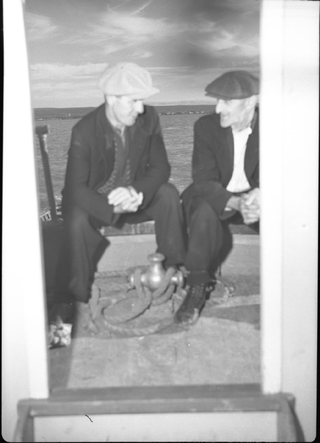 Île-aux-Grues : hommes causant sur le quai