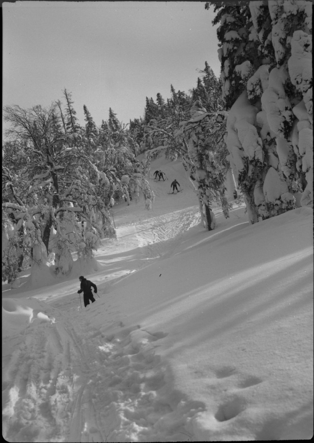 Skieurs dans des sentiers enneigés. Mont Tremblant, vers 1950, Archives nationales à Québec, Fonds George A. Driscoll, (03Q,P630,S14,D87851), George A. Driscoll.